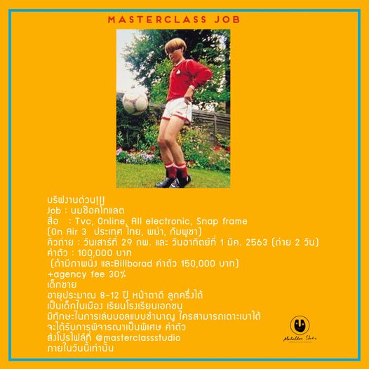 อายุประมาณ 8-12 ปี หน้าตาดี ลูกครึ่งได้ เป็นเด็กในเมือง เรียนโรงเรียนเอกชน มีทักษะในการเล่นบอลแบบชำนาญ ใครสามารถเดาะเบาได้ จะได้รับการพิจารณาเป็นพิเศษ ค่าตัว